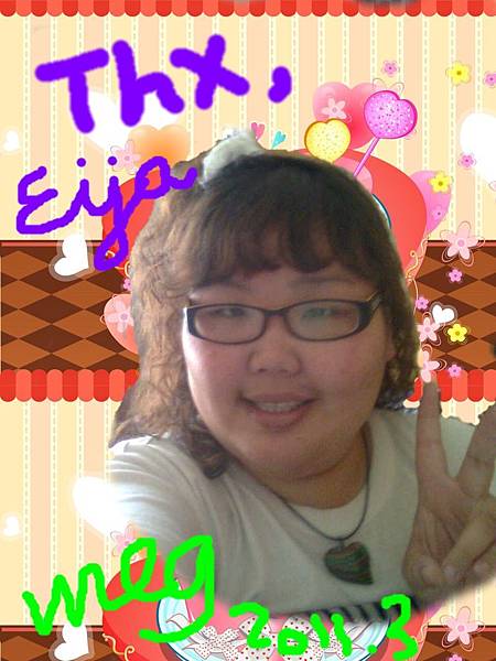 後來帶著項鍊在房間自拍了一堆, 選了一張好看的寄EMAIL給Eija~ 謝謝她![]()